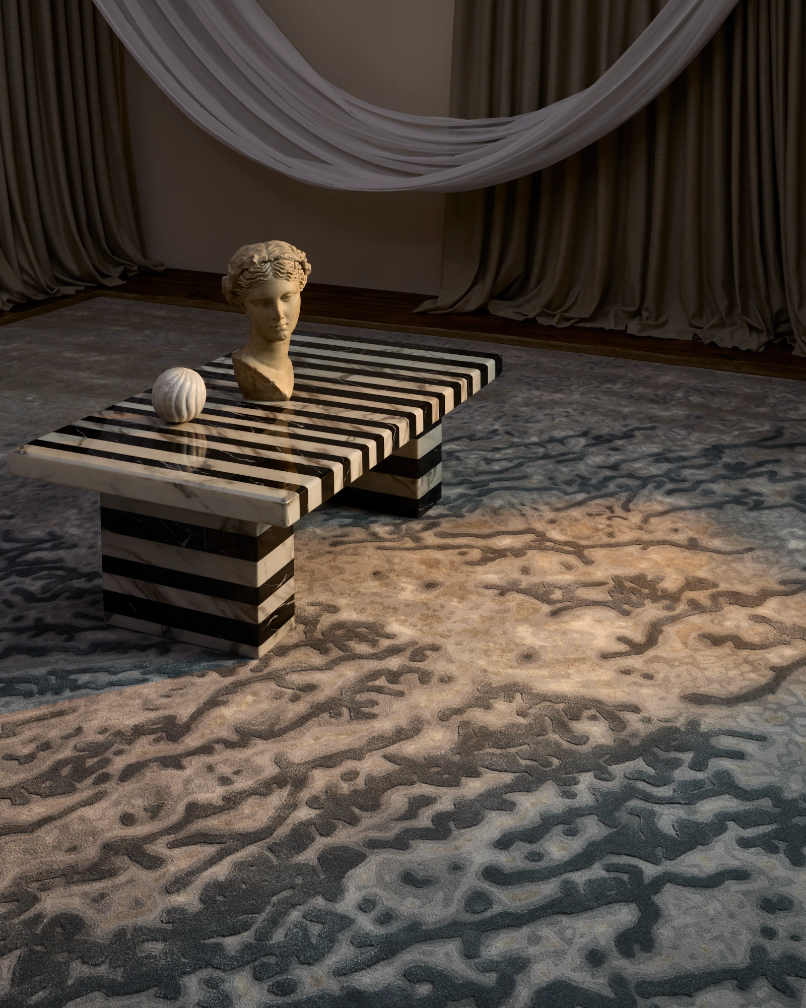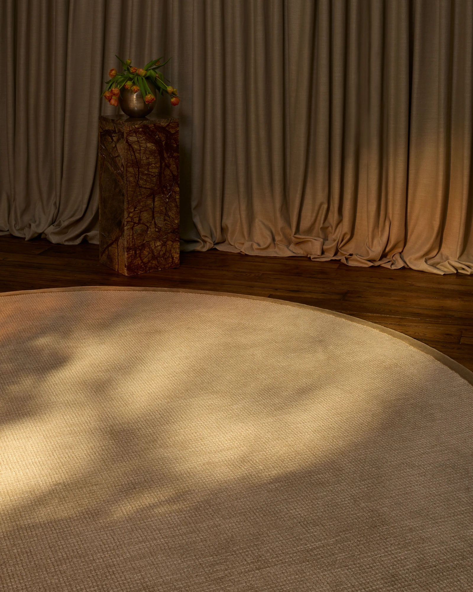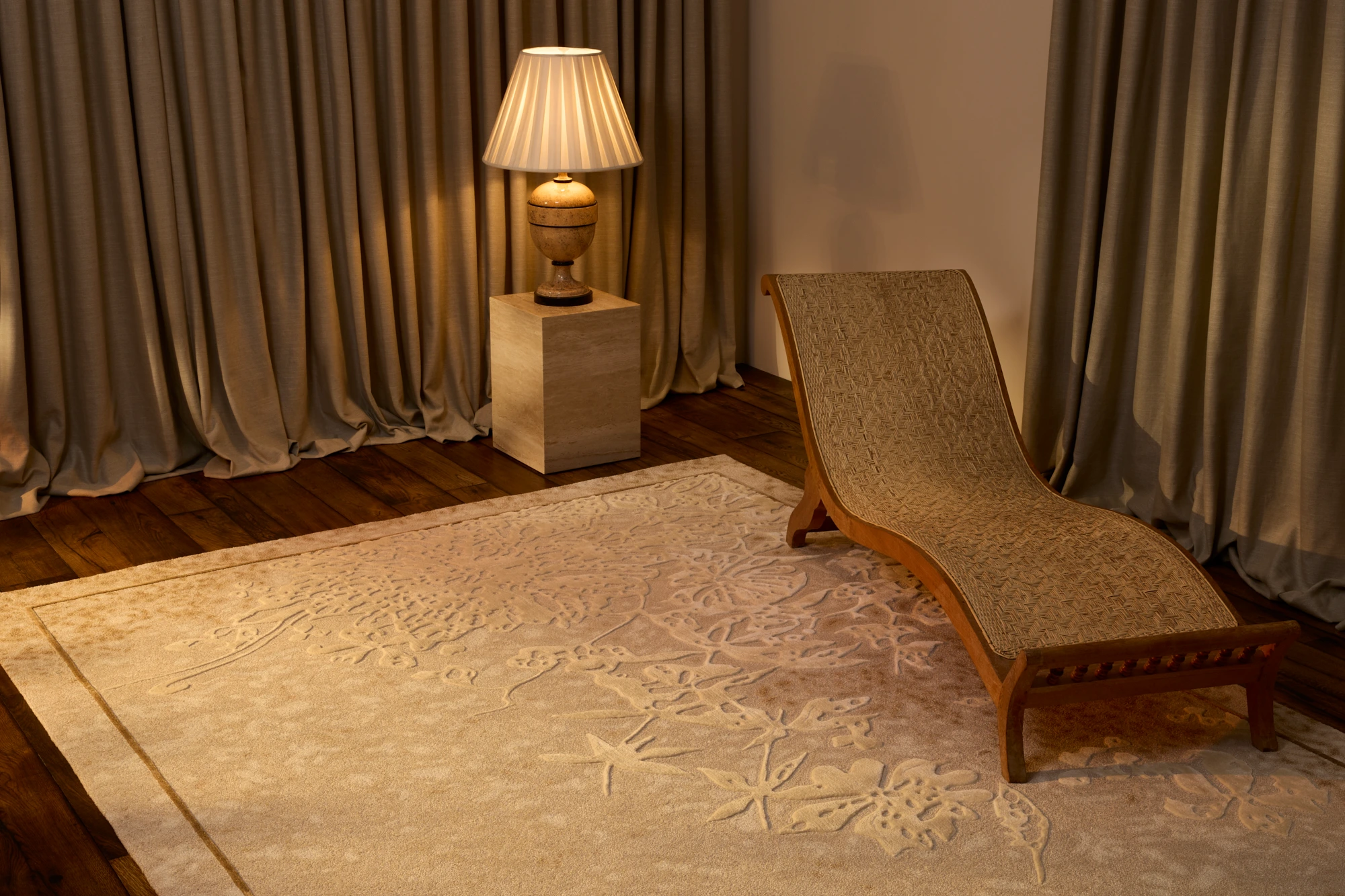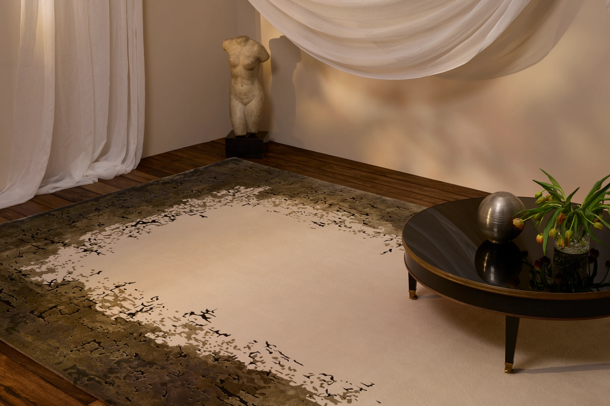 Step into an elegant retreat—a private space where luxury and intrigue converge. The rugs are the centerpiece, their rich textures and bold patterns glowing under warm, golden light. Shadows deepen the drama, creating a cinematic atmosphere where every detail feels intentional.