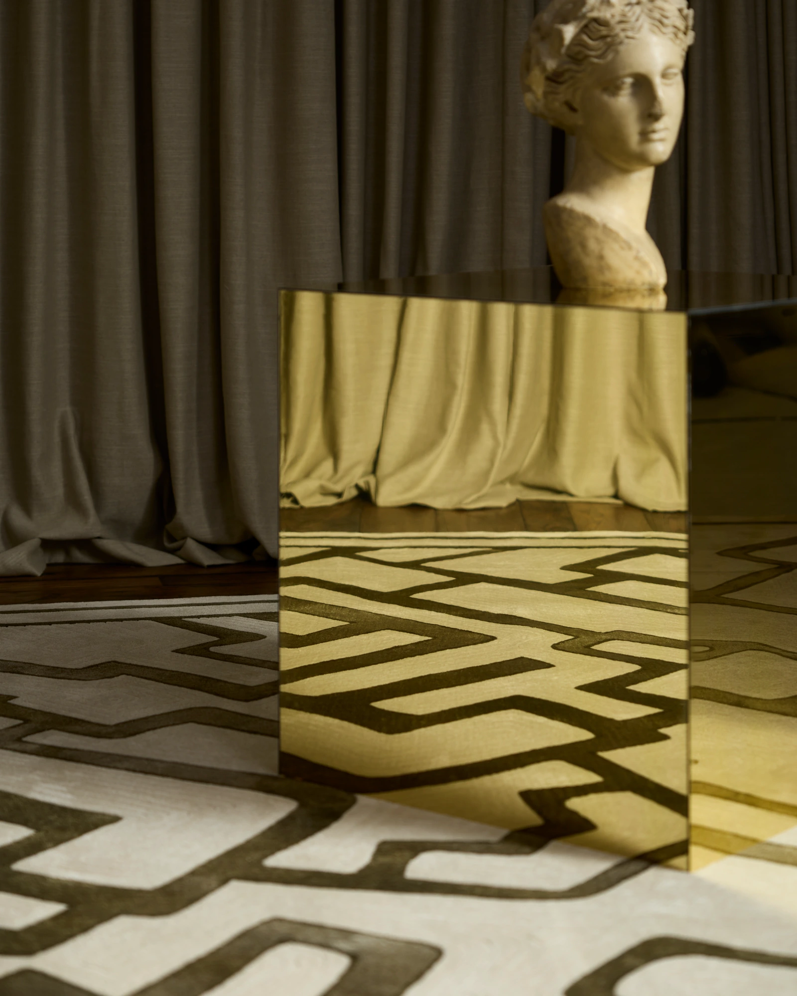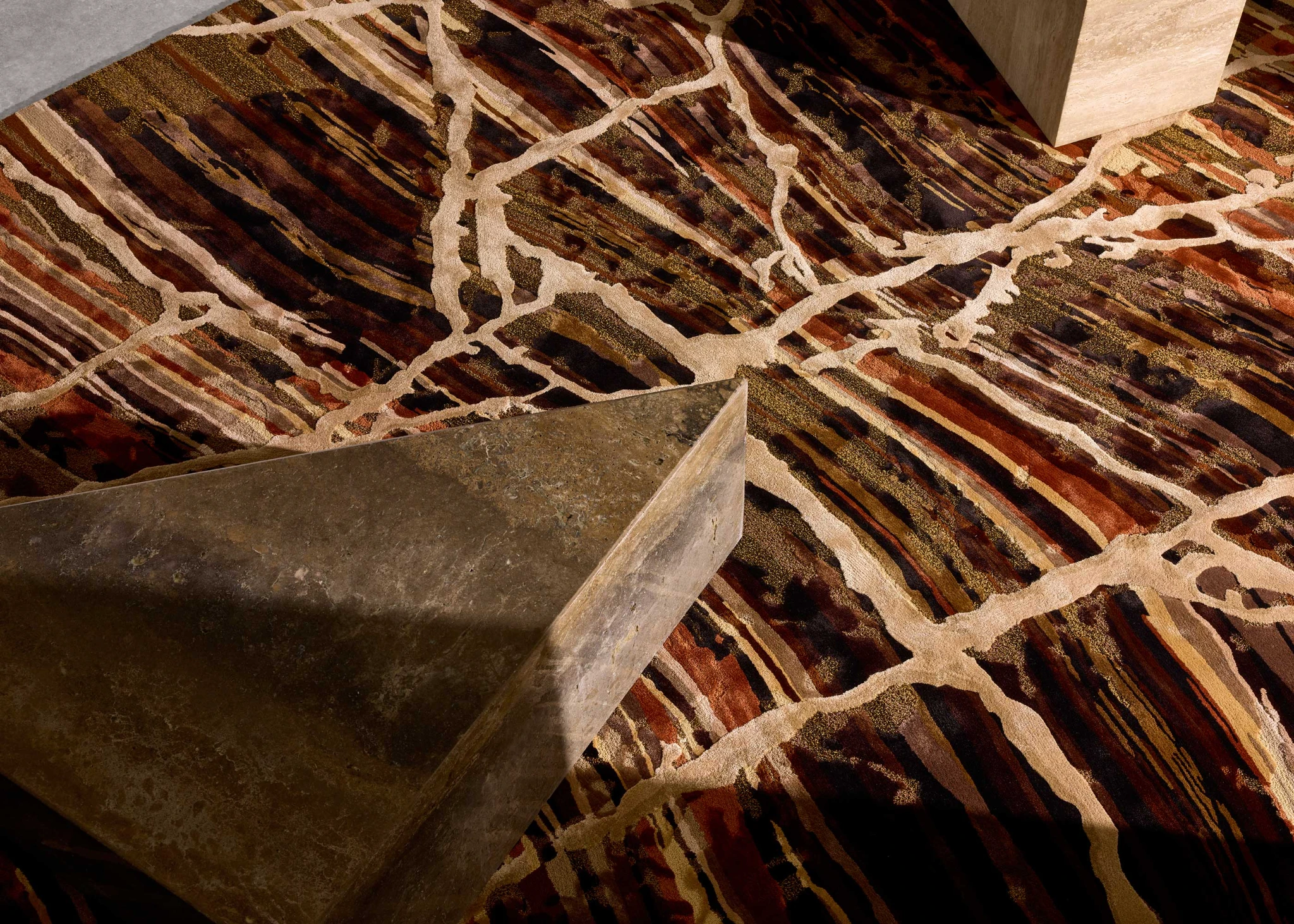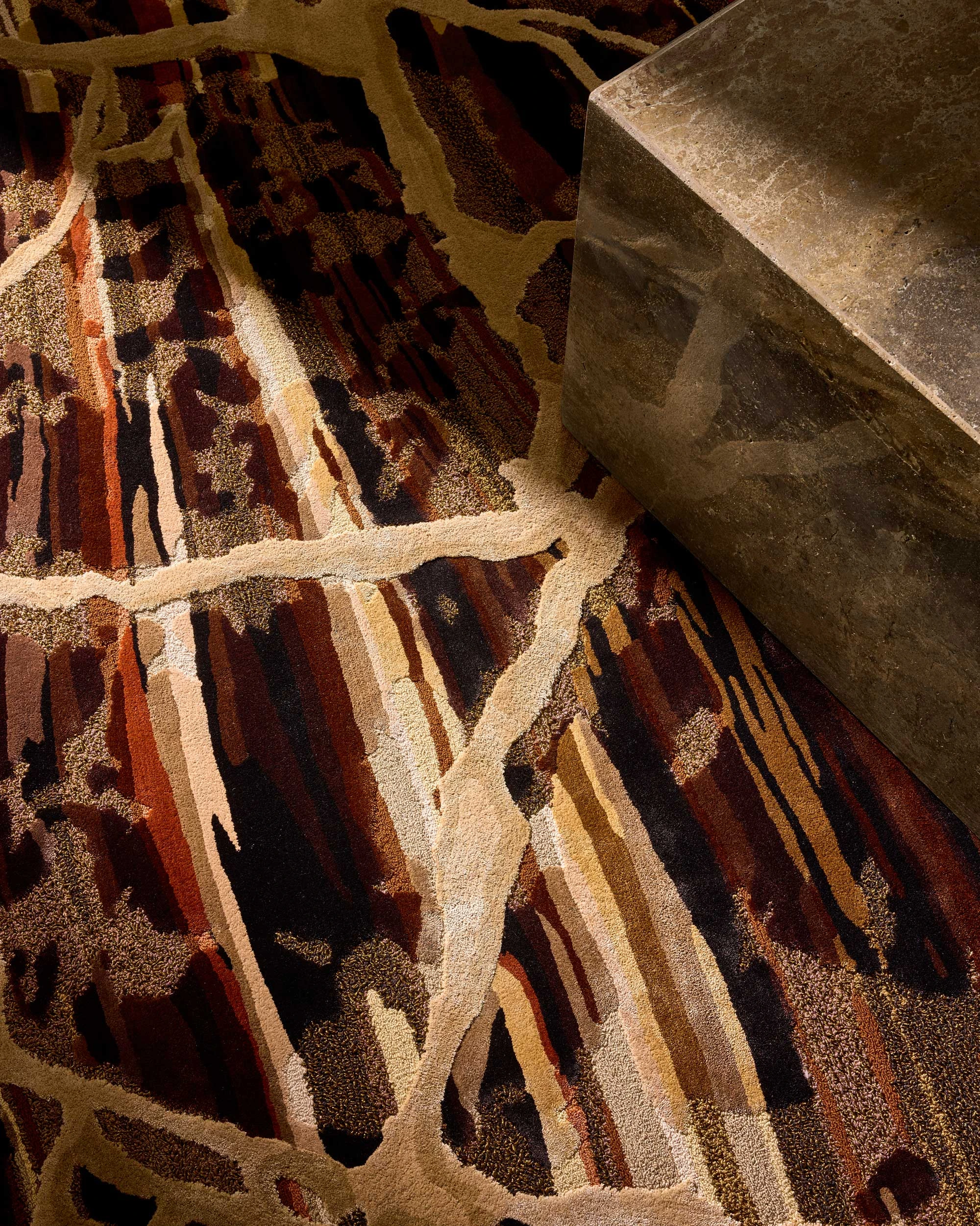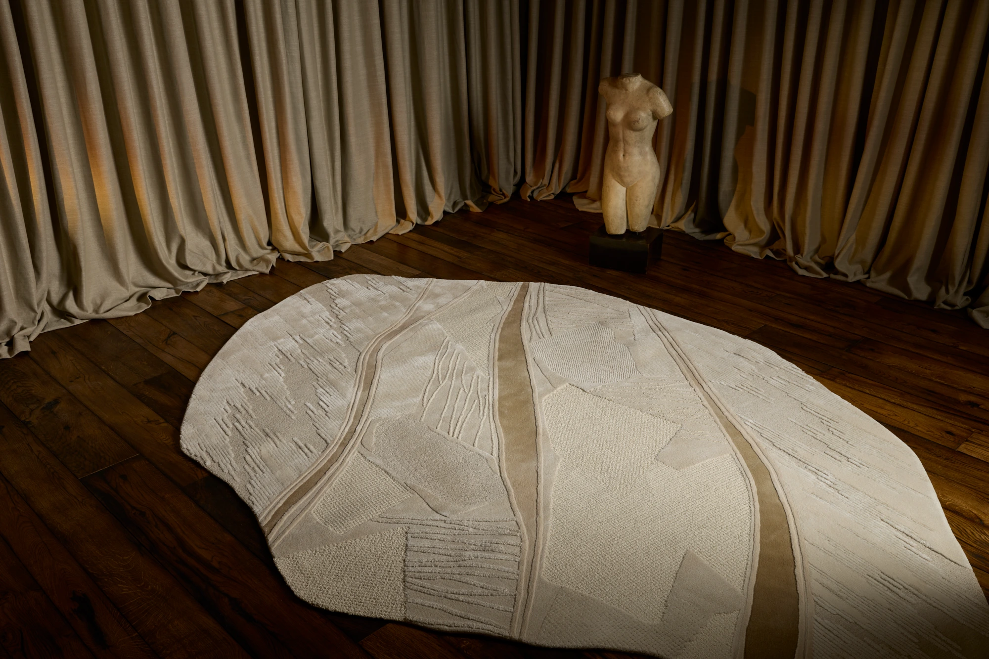 Step into an elegant retreat—a private space where luxury and intrigue converge. The rugs are the centerpiece, their rich textures and bold patterns glowing under warm, golden light. Shadows deepen the drama, creating a cinematic atmosphere where every detail feels intentional.
